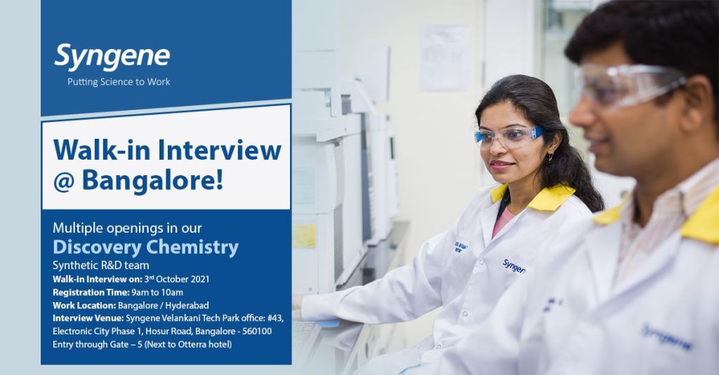 Multiple vacancies in Syngene International | 3rd Oct’ 2021