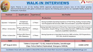 Vacancy for Aspiro Pharma | B.Sc | M.Sc | B.Pharm | M.Pharm | ITI | Diploma Candidates