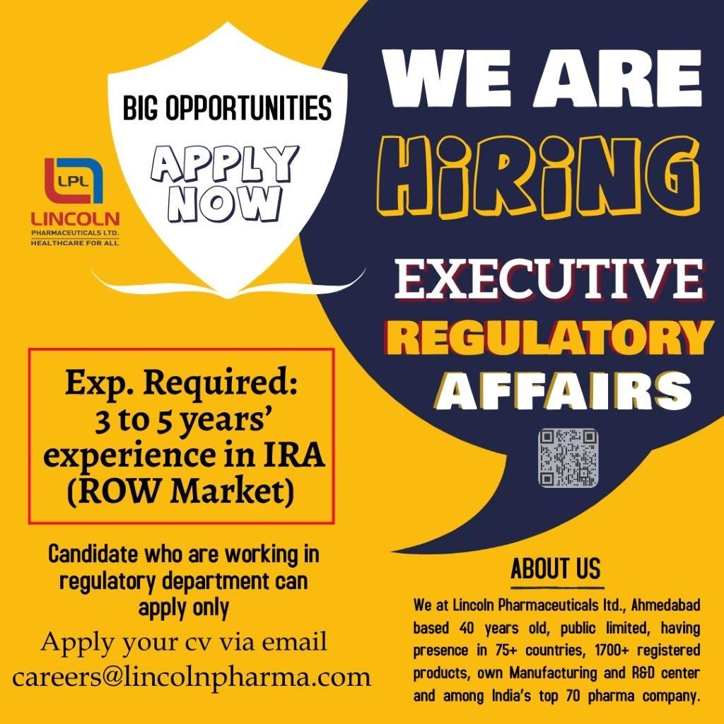 Vacancy for Executive | Regulatory Affairs| Lincoln