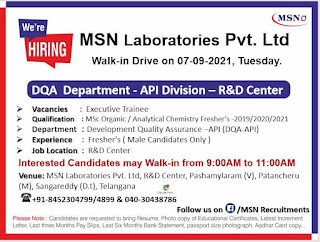 Vacancy for FRESHERS | MSN Laboratories Pvt. Ltd