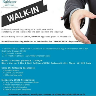 Vacancy for Rubicon Research | Freshers & Experienced | Production