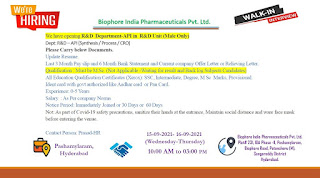 Vacancy in Biophore India | Freshers & Experienced | R&D